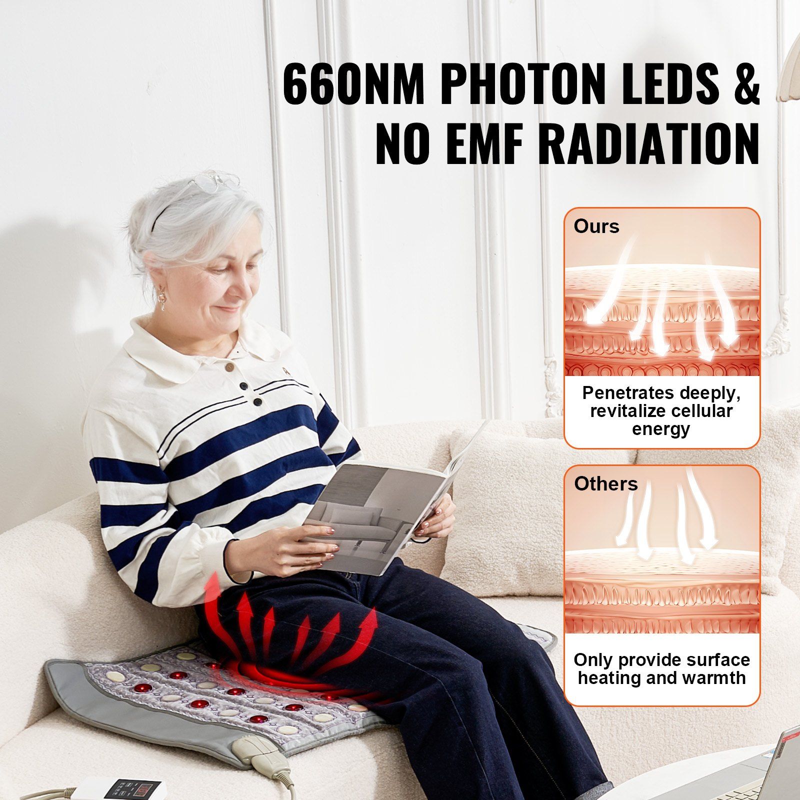 Feel the soothing warmth that relieves stress and relaxes body. Our 32" x 20" far infrared heating pad combines 2 natural gemstones, combining 660nm photon red light, hot gemstones, far infrared rays, and negative ions to penetrate deep into muscles, relieve body pain, and boost circulation.